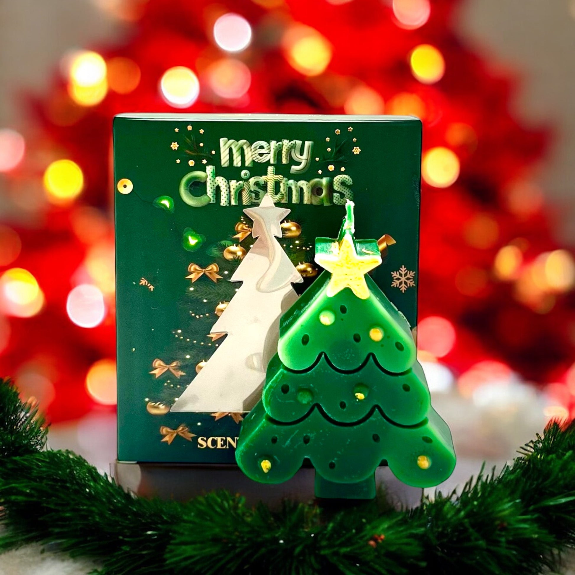 Ez egy még kifinomultabb, különleges karácsonyfa alakú gyertya, amely térbeli hatást kelt a részletgazdag formájával. A karácsonyfa három rétegre van osztva, mindegyik rétegen apró arany díszek találhatók, amelyek az ünnepi időszak hangulatát idézik, amikor mindenki feldíszíti a saját karácsonyfáját. A fa csúcsán egy arany csillag ragyog. A csomagolás teljes egészében kiemeli a gyertyát, tele van karácsonyi elemekkel, és a közepén egy átlátszó ablakkal rendelkezik, amely lehetővé teszi, hogy a vásárlók teljesen megcsodálhassák a gyertyát.
